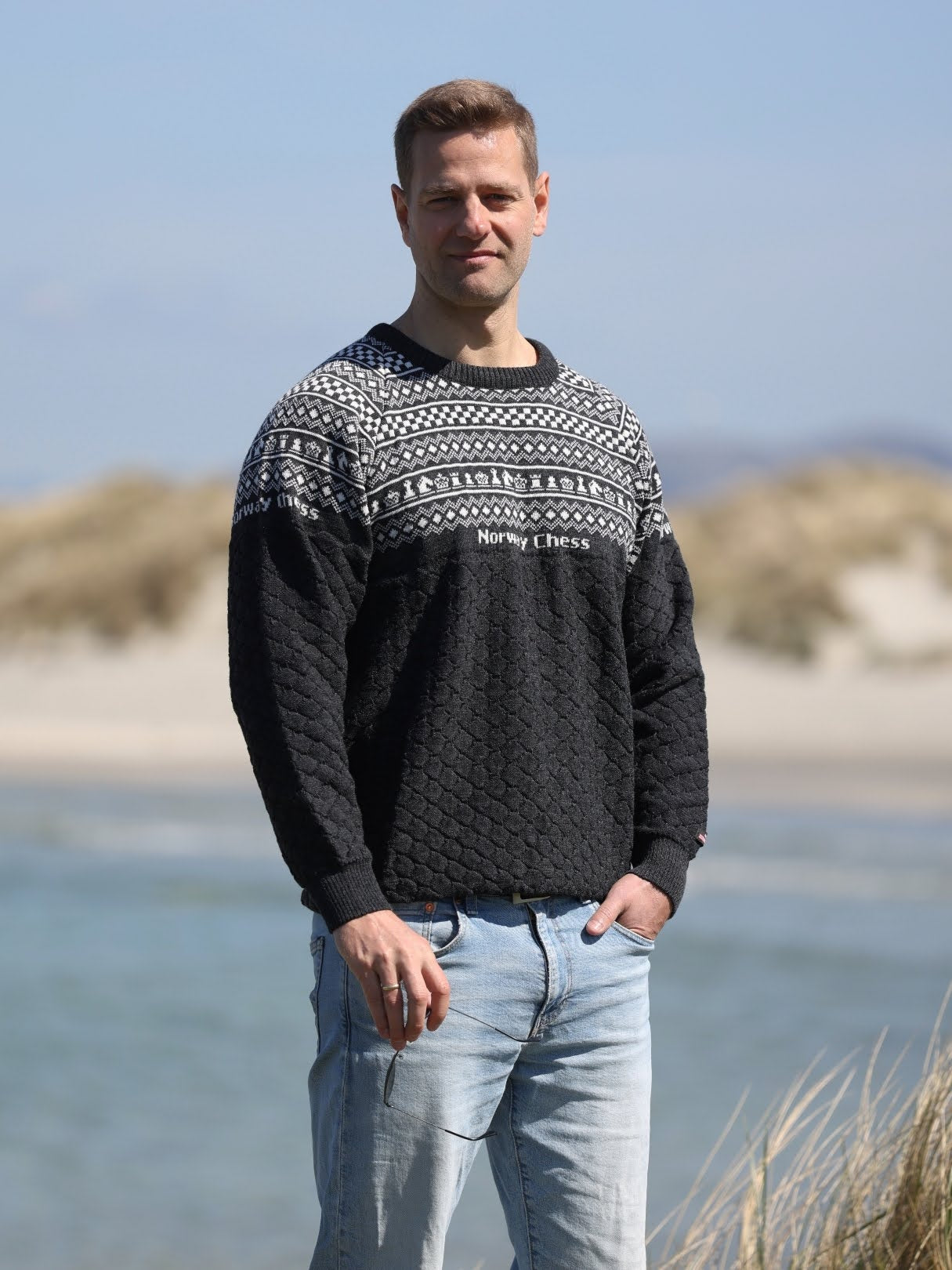 This isn't just any wool sweater - it's an exact replica of the distinguished design worn by chess grandmasters during two historic moments in chess history: the spectacular opening of the world's largest chess board in Stavanger on June 4th, 2022, and the prestigious Norway Chess garden party. By wearing this sweater, you're not just choosing exceptional quality; you're wearing a piece of chess history.
